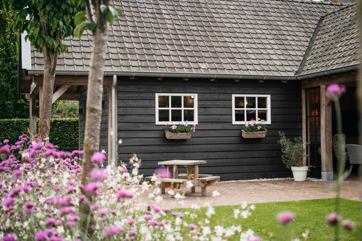 Deze landelijke schuur is een prachtig aanzien van de tuin! Aan de schuur is ook een zitgedeelte gemaakt, zodat de schuur voor meerdere functies kan worden gebruikt.