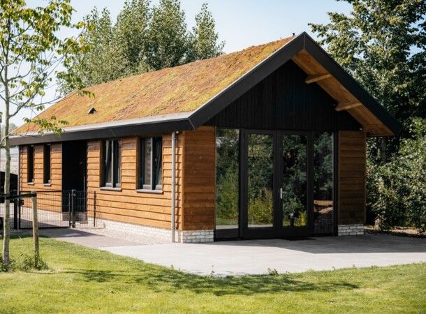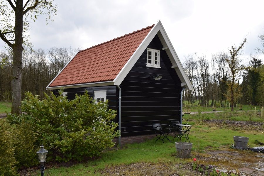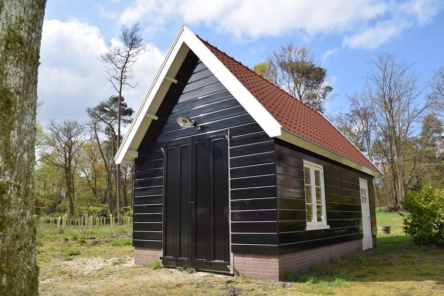 Deze landelijke schuur met rode pannendak ligt prachtig in het groene, bosrijke landschap. Door de luiken is de voorkant van de schuur geheel afsluitbaar. De schuur is uitgevoerd in dezelfde stijl als de woning en past zo perfect bij het geheel. Kortom een echte maatwerk schuur, afgestemd op de bestaande bebouwing!