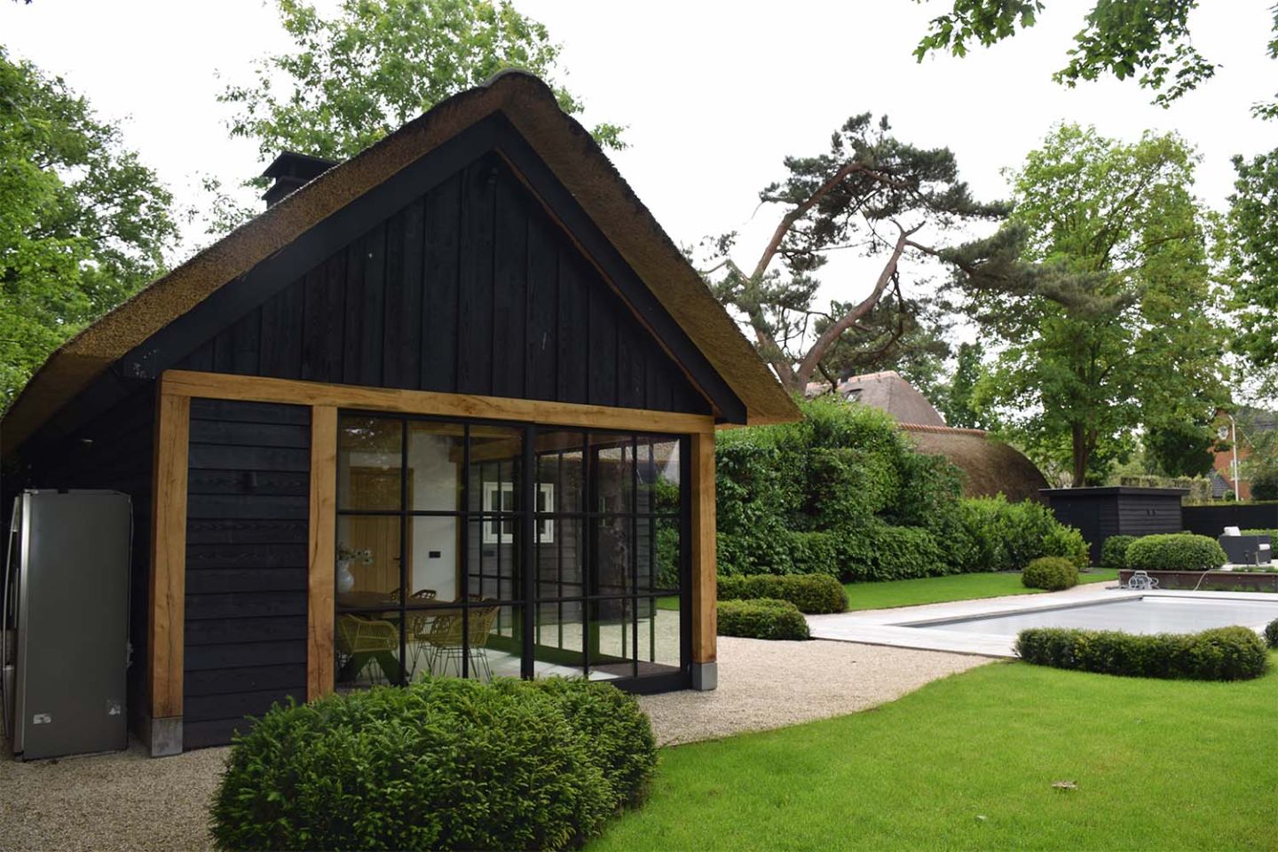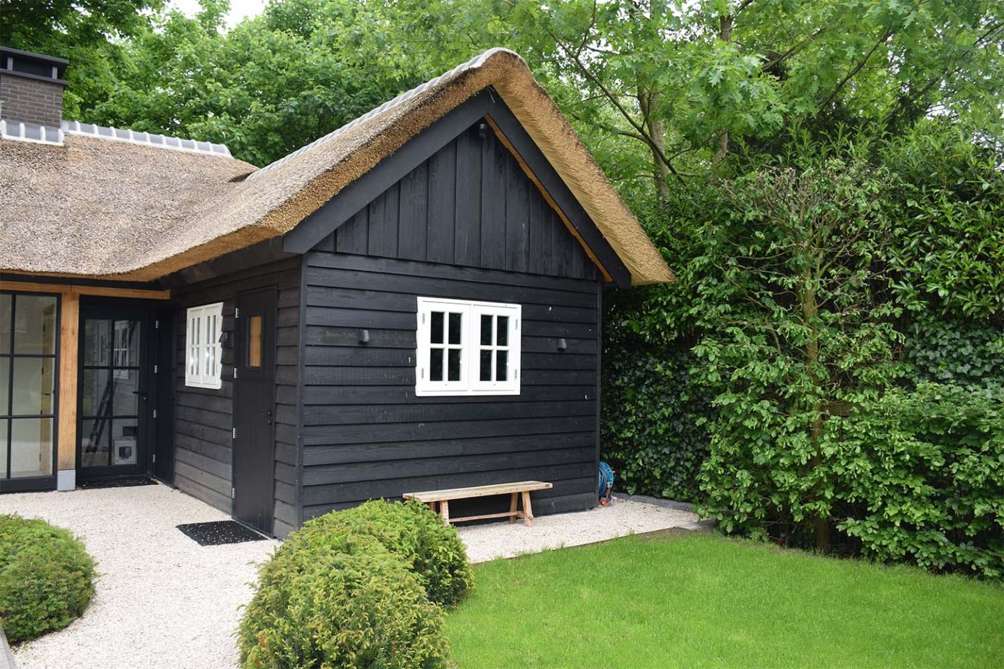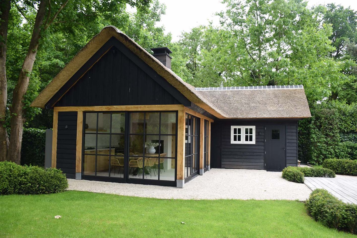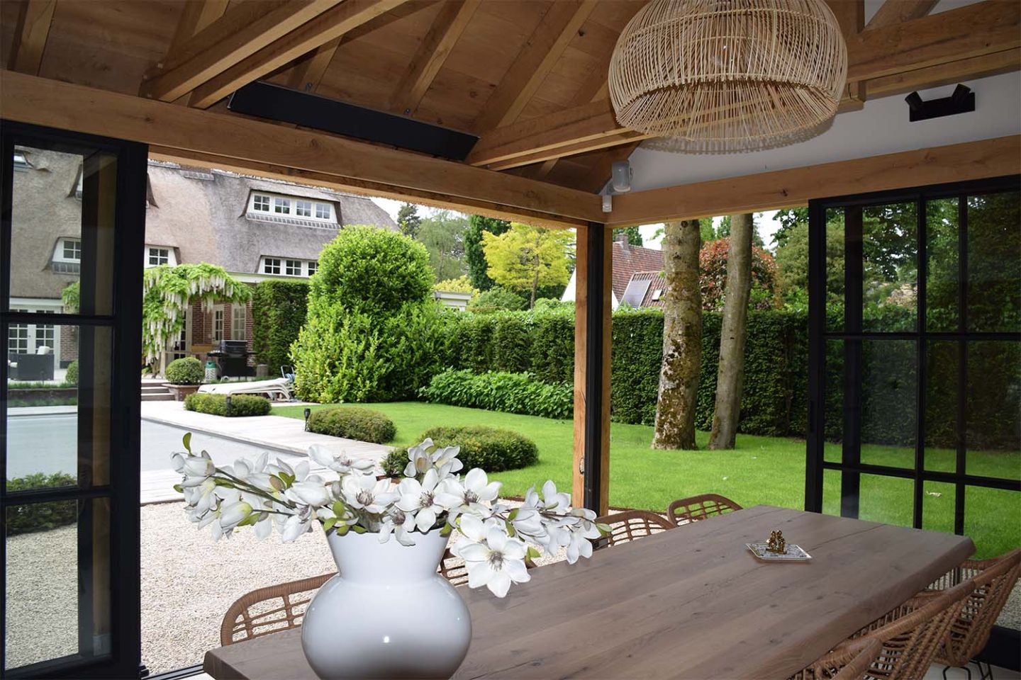 Deze riante tuinkamer past door het klassieke ontwerp prachtig in de groene omgeving. De authentieke details als de kleine ramen met roedes zorgen ervoor dat het totaalplaatje volledig klopt.
