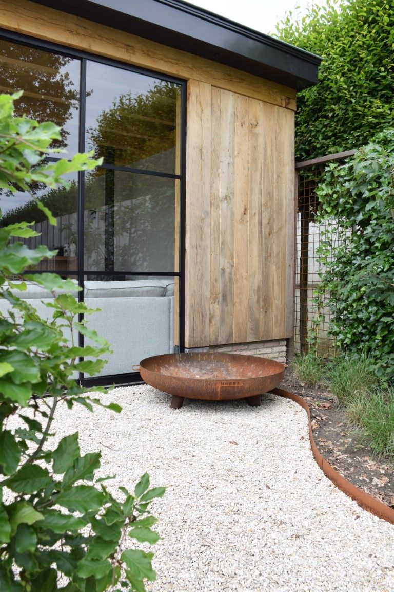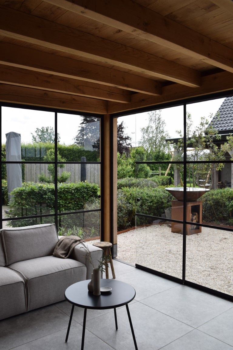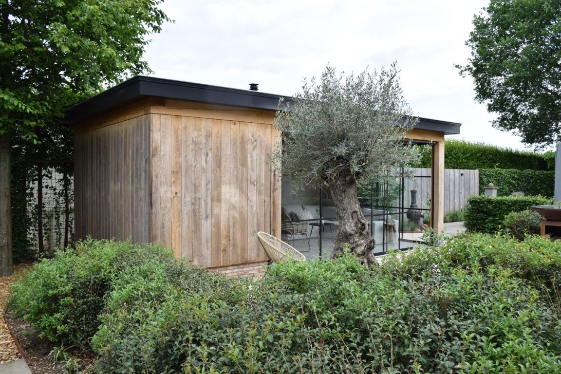 Deze sfeervolle tuinkamer ligt prachtig in een prachtige aangelegde tuin. Door gebruik te maken van de natuurlijke houtelementen, komt deze tuinkamer heel mooi tot zijn recht in deze tuin. De tuinkamer is voorzien van glazen schuifwanden, zodat er ook in de koudere tijd gebruik van gemaakt kan worden. In de tuinkamer is een houten bar geplaatst en een houtkachel. Kortom, een sfeervolle tuinkamer!