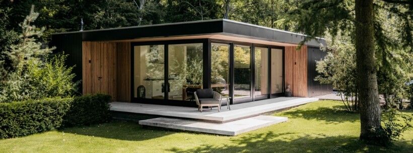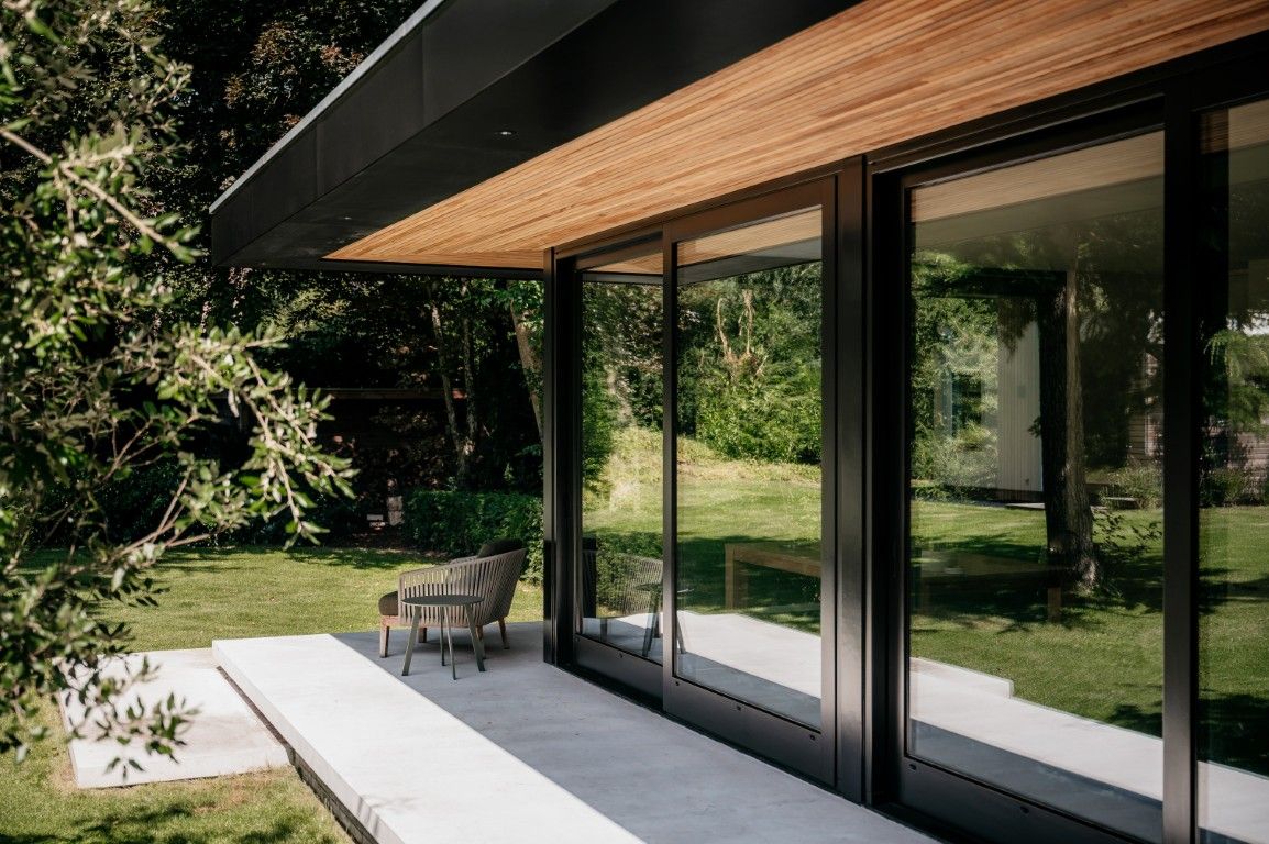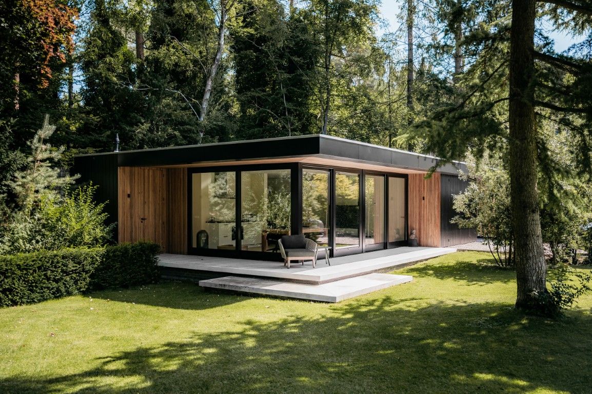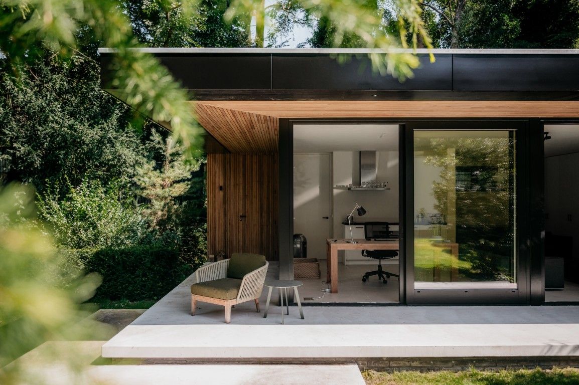 Een strakke en stijlvolle tuinkamer, prachtig gelegen in de mooie bosrijke omgeving. De tuinkamer is voorzien van een keuken en toilet. Een heerlijk verblijf om in te werken of gewoon lekker tot rust te komen. De glazen schuifdeuren kunnen woren opgeschoven, zodat er nog meer kan worden genoten van de buitenlucht. Kortom, een prachtig resultaat en een schitterde plek om tot rust te komen!