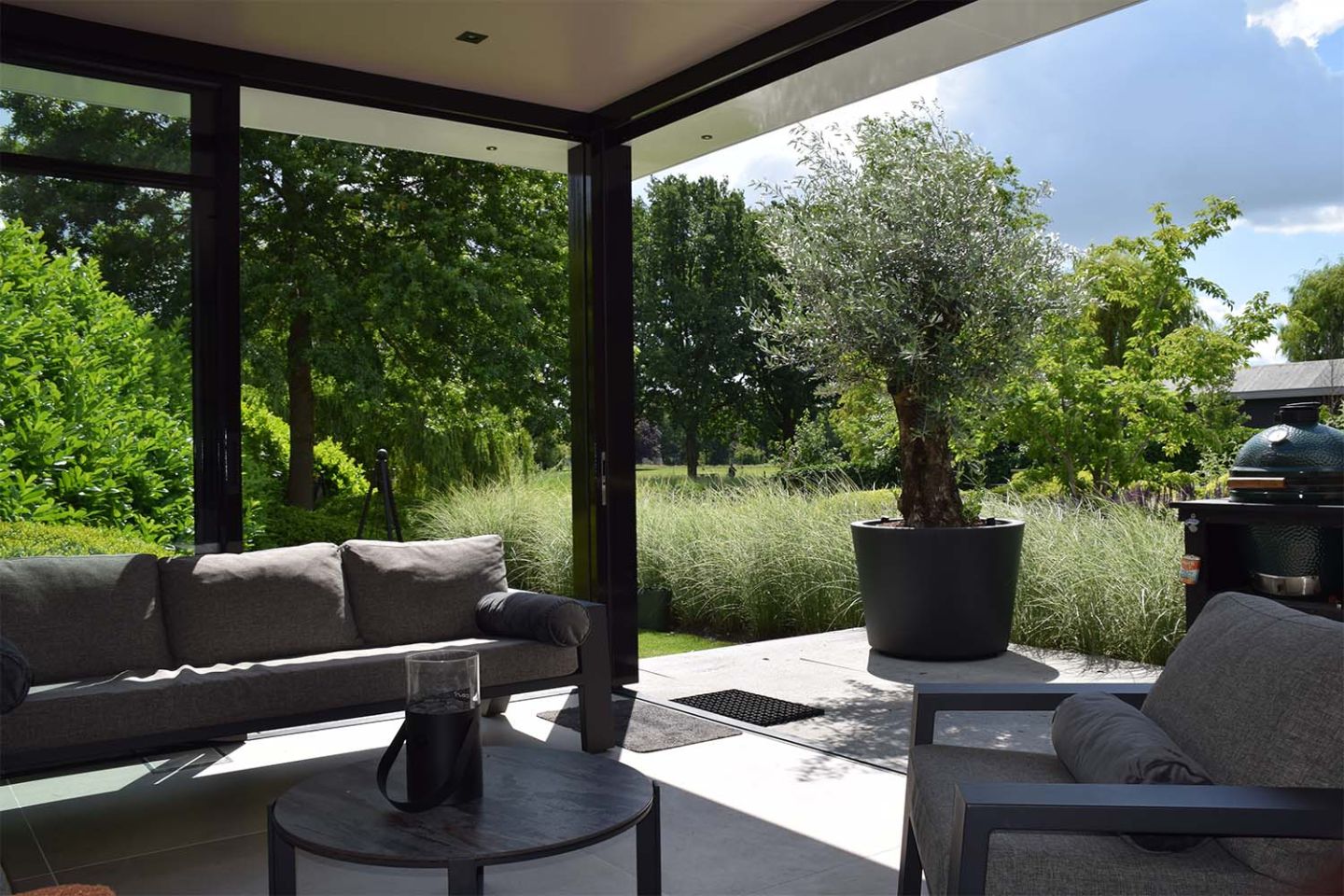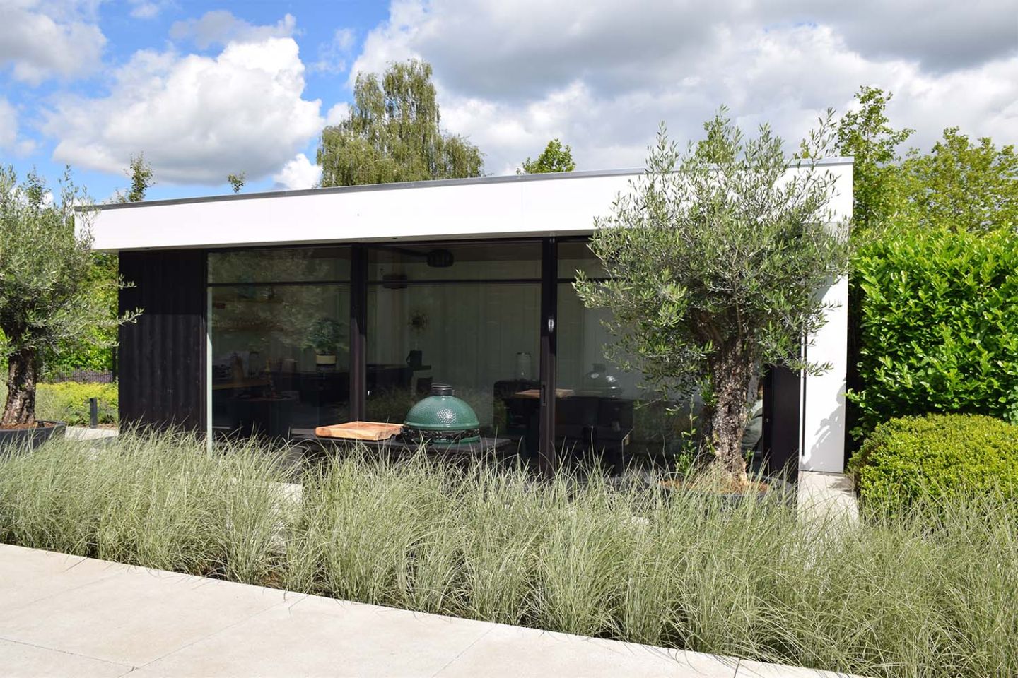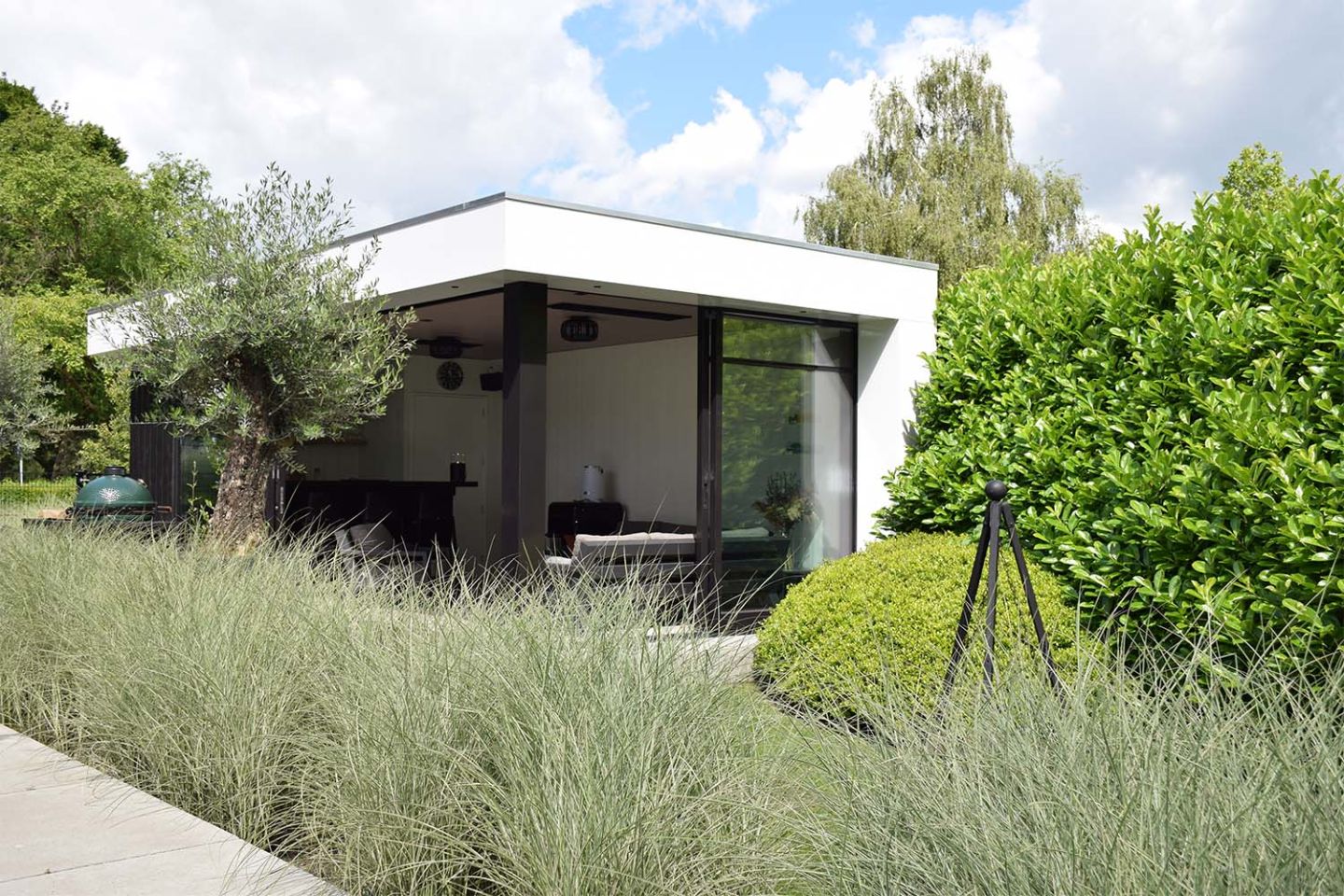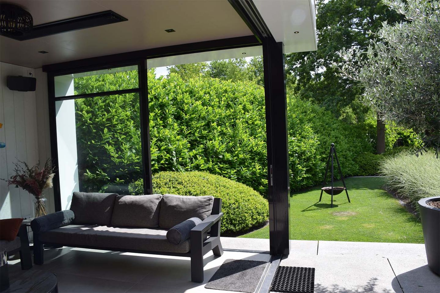 Deze tuinkamer kenmerkt zich door het strakke, moderne ontwerp waardoor het verblijf uitstekend combineert met de tuinarchitectuur.